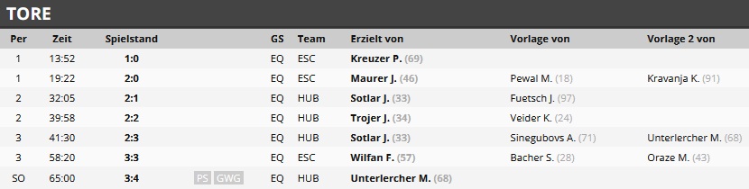 Endergebnis: 3:4 SO (2:0, 0:2, 0:1, 0:0)