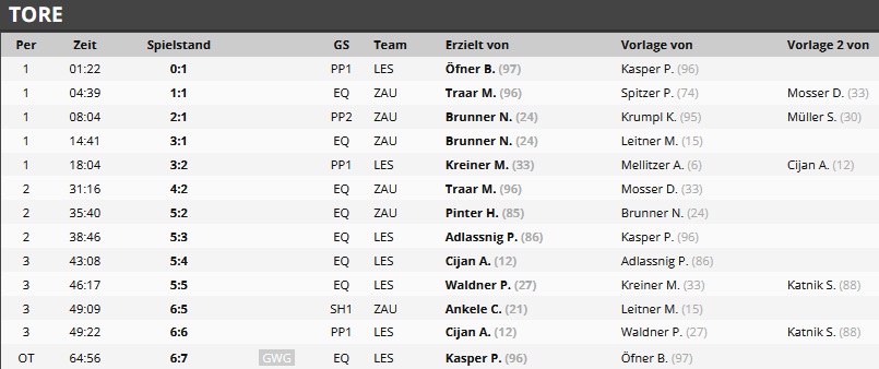 Endergebnis: 6:7 OT (3:2, 2:1, 1:3, 0:1)