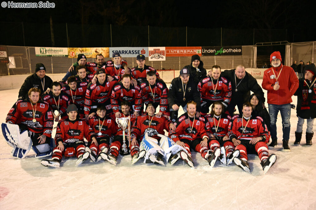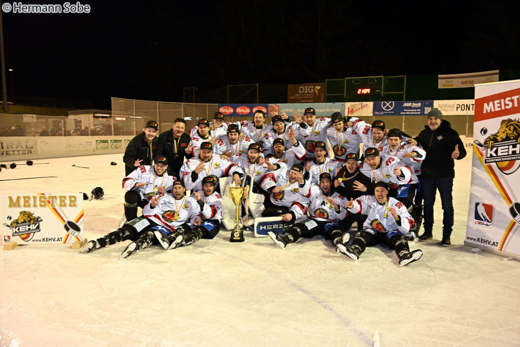„Nach einem spannenden Finalspiel 2 sind wir zum zweiten Mal in der KEHV Division 2 West und insgesamt zum vierten Mal in Folge Meister.