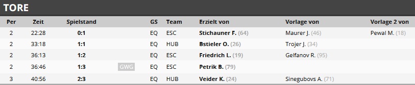 Endergebnis: 2:3 (0:0, 1:3, 1:0)