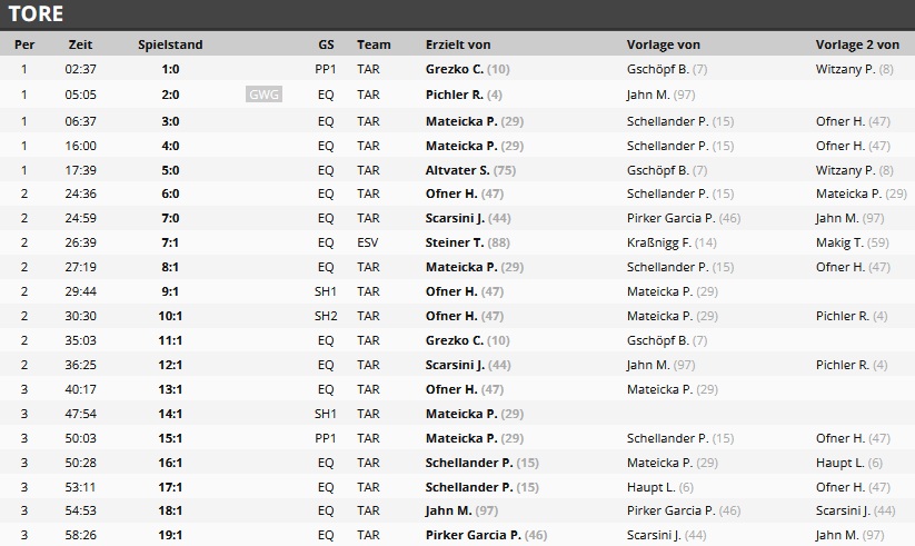 Endergebnis: 19:1 (5:0, 7:1, 7:0