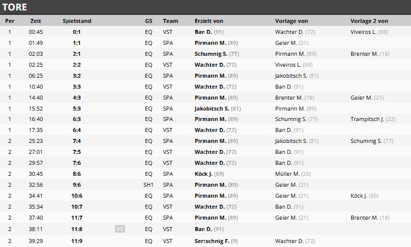 Endergebnis: 14:13 OT (6:4, 5:5, 2:4, 1:0)