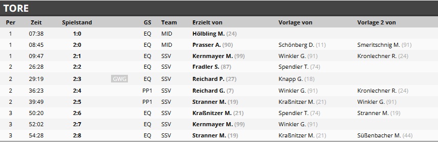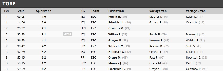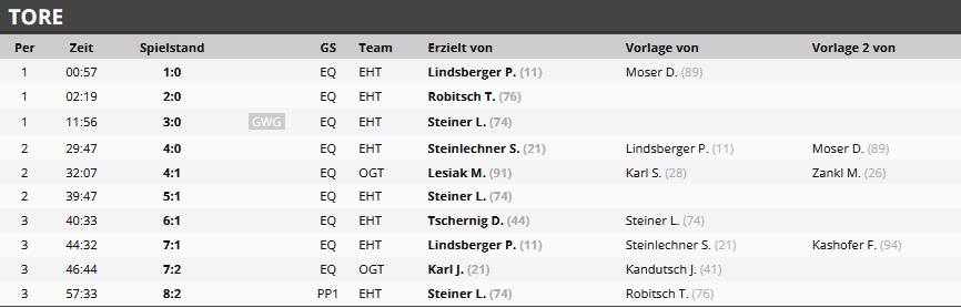 Endergebnis: 8:2 (3:0, 2:1, 3:1)