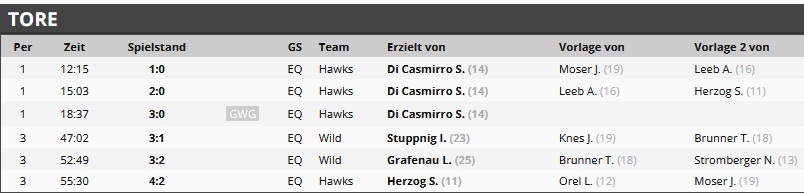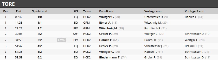 Endergebnis: 6:3 (1:1, 3:1, 2:1)