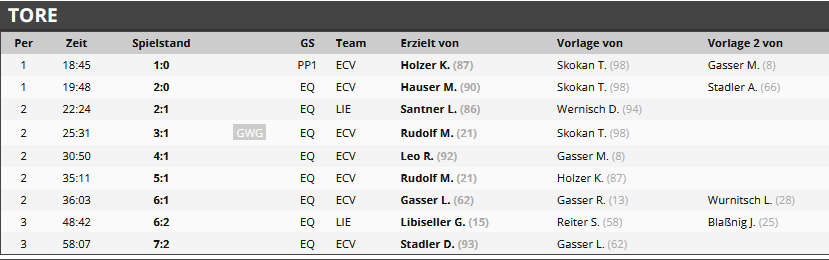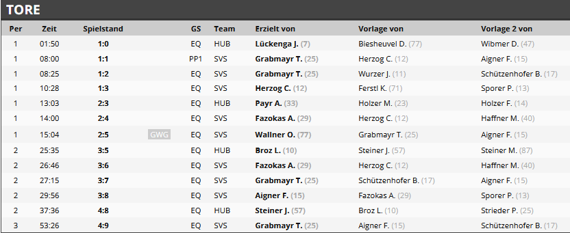 „Im ersten Abschnitt waren die Verhältnisse aufgrund des starken Schneefalles für beide Mannschaften sehr schwierig. Trotzdem konnten unsere Wölfe mit einem Ergebnis von 2:0 in die erste Pause gehen. Im zweiten Drittel erfolgte nach 10 Minuten nochmals eine Eisreinigung, ehe der Schneefall langsam aufhörte und unsere Mannschaft die gewohnte Leistung abrufen konnte. Der letzte Abschnitt verlief relativ ausgeglichen, dennoch spielte unsere Mannschaft den 7:2 Erfolg souverän zu Ende.“