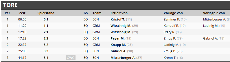 Endergebnis: 3:4 (2:2, 1:1, 0:1)