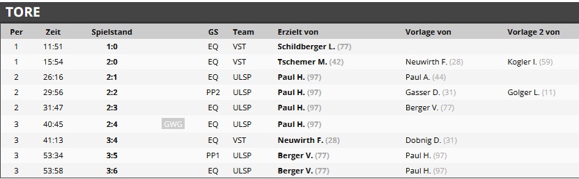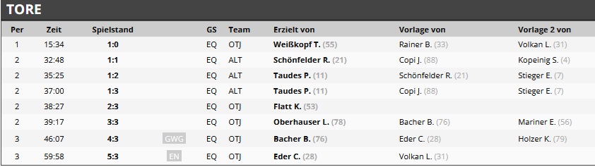 Endergebnis: 5:3 (1:0, 2:3, 2:0)