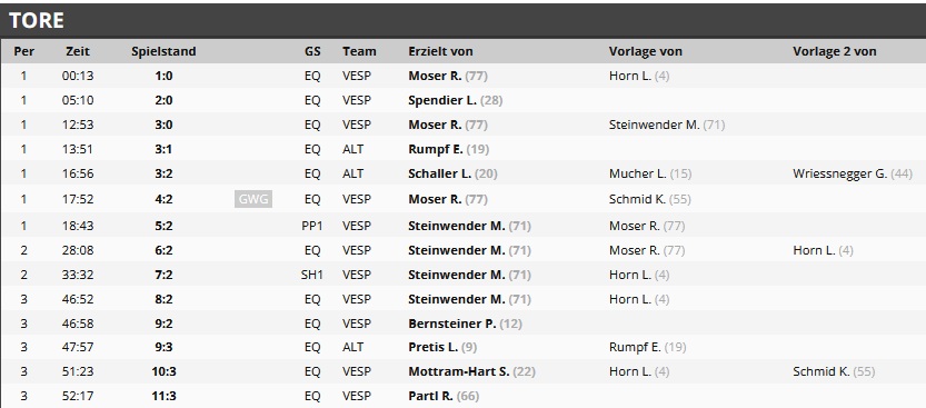 Endergebnis: 11:3(5:2, 2:0, 4:1)