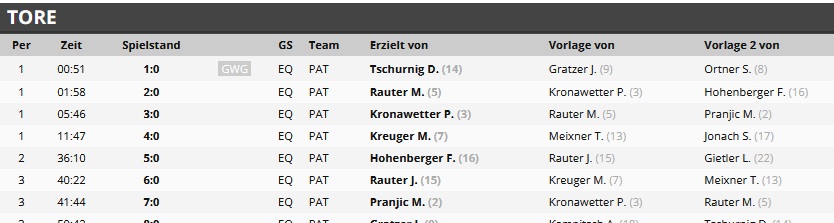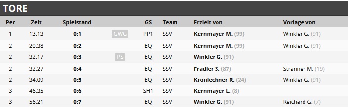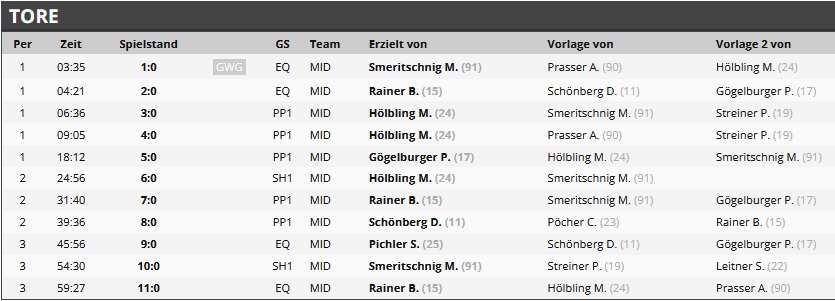 Endergebnis: 11:0 (5:0, 3:0, 3:0)